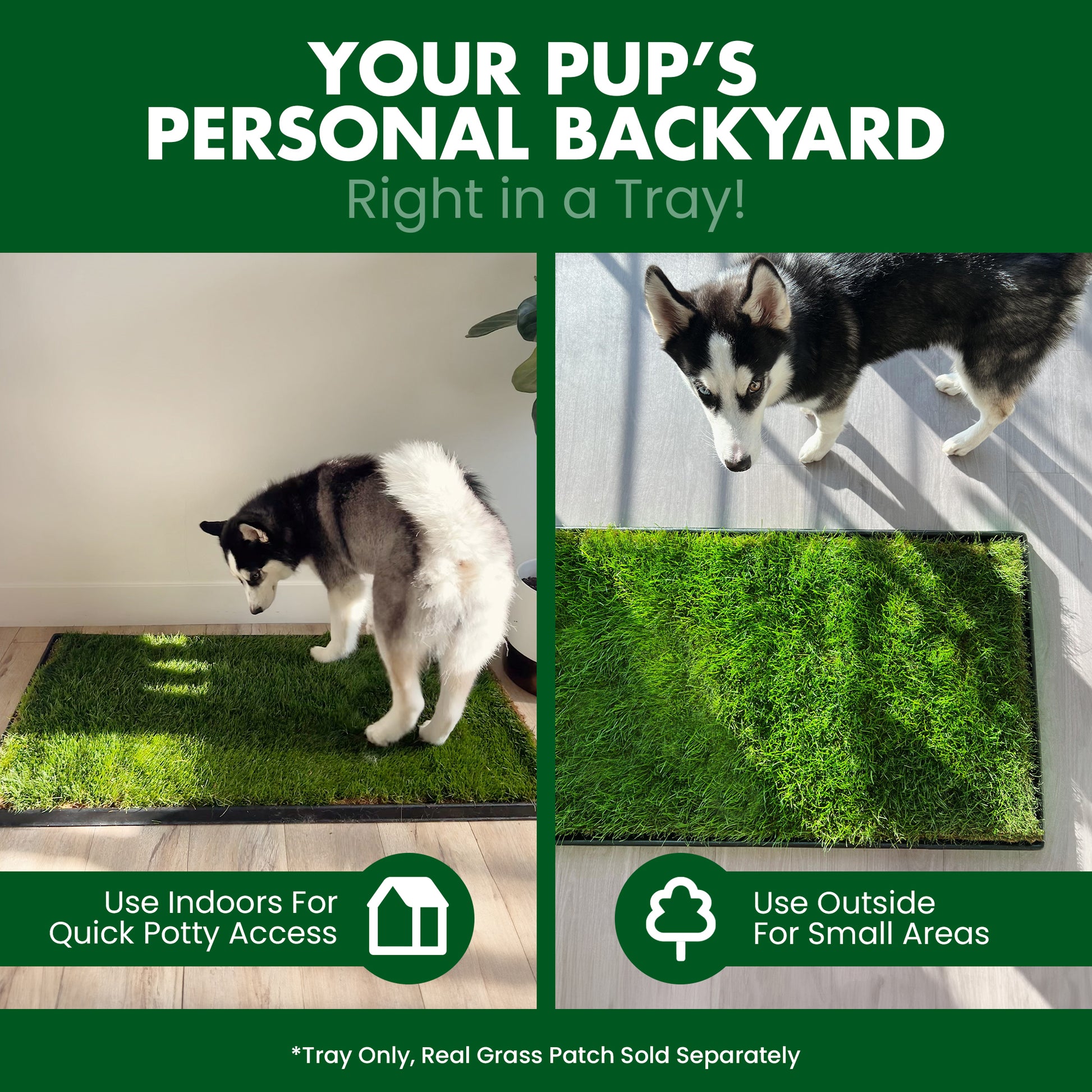 The Plastic Tray is custom made to fit the 2' x 4' foot Fresh Patch XL grass. It's perfect for housing apartment dog grass.